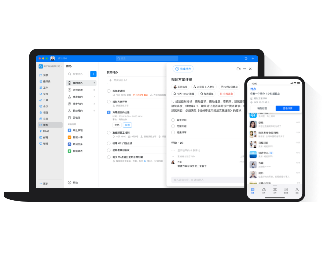 隨時隨地與團隊同步工作進展,不必反復追問,任務完成后會自動通知所有參與者。
