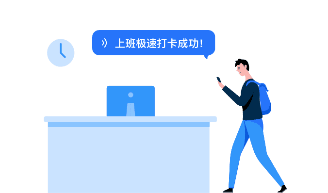 員工人性化考勤上班時間到公司,打開釘釘自動打卡,再也不用擔心忘打卡了。